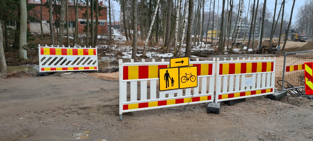 Kävelin tänään 26.3. aamulla Otaniemessä Miestentietä Otaniementielle. Risteyksessä ja muutenkin alueella on paljon tietöitä. Jalankulkijoiden ja pyöräilijöiden kiertotie on huonosti merkitty – merkkiä ei näe. Kiertotietä osoittava liikennemerkki on työmaa-aidassa. Ongelma on siinä, että kun aita avataan (kuten tänään oli tilanne), niin liikennemerkki ei näy. Tämä näkyy selvästi liitteessä olevassa kuvassa. Toisessa kuvassa näkyy itse merkki.